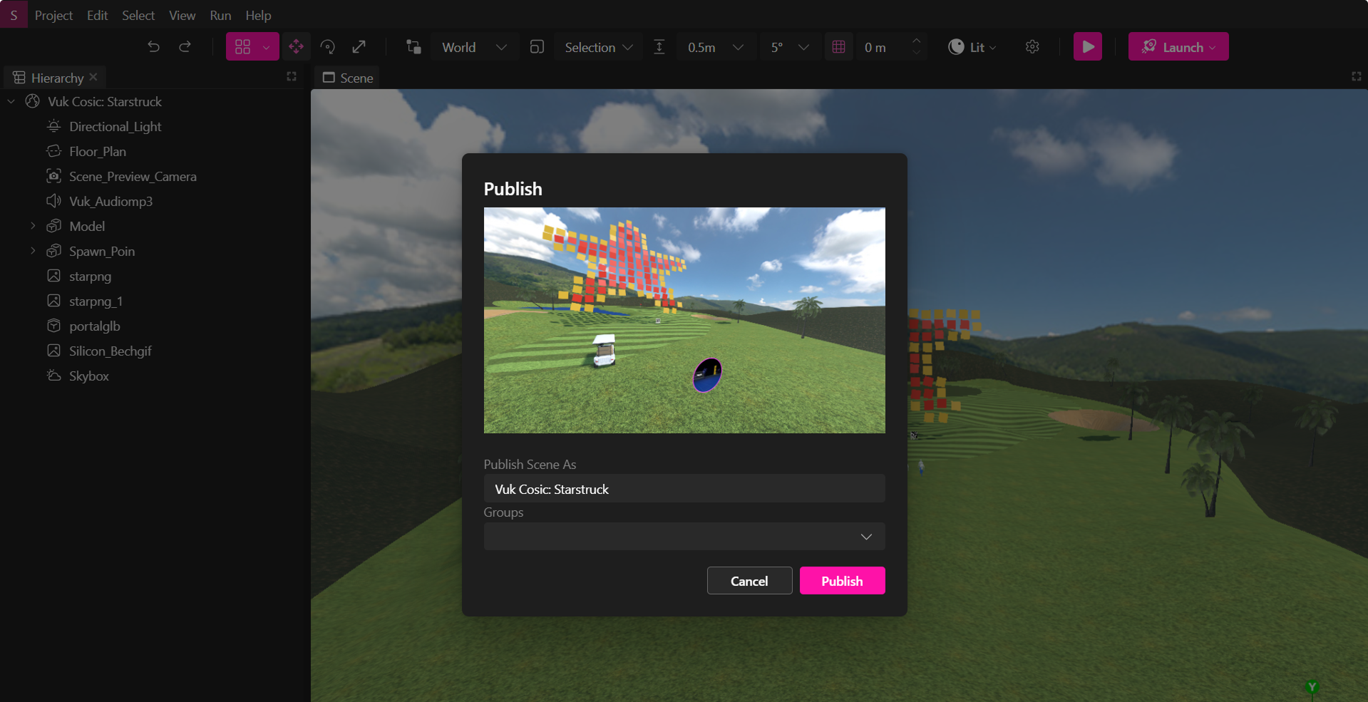 Publica tu mundo XR al instante o expórtalo como archivo .xrproj para compartirlo o usarlo posteriormente.